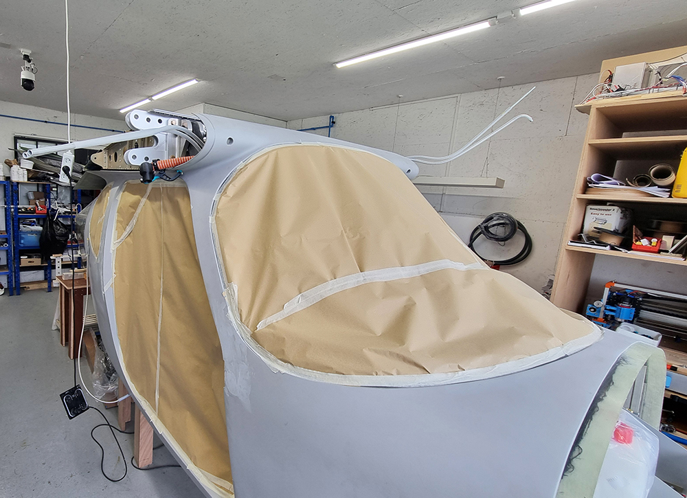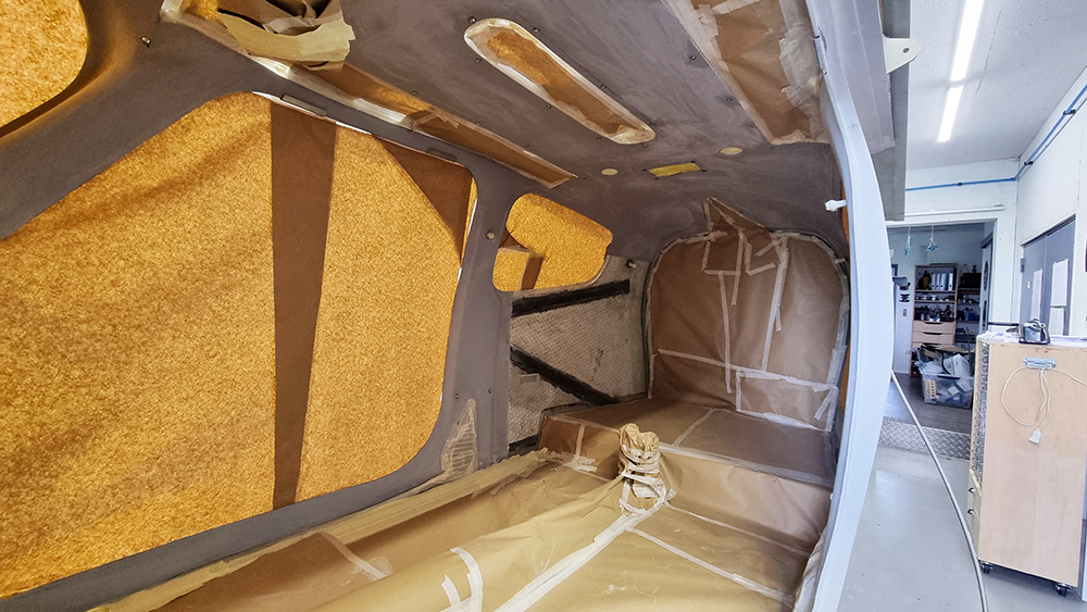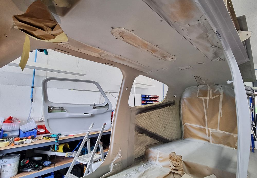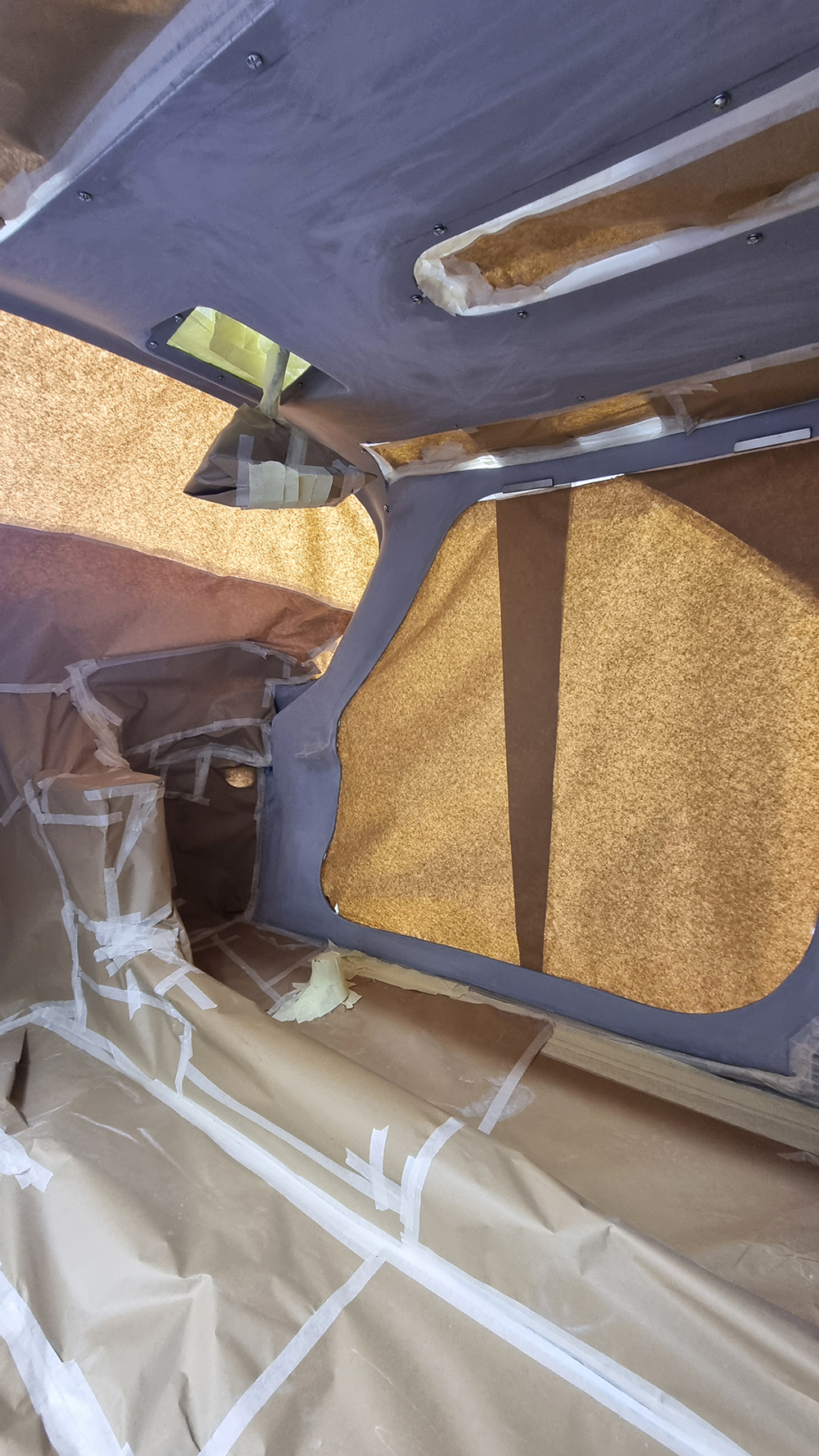 Mission finition de l’intérieure, le plus long est le cachage de l’intérieur de la cellule pour peindre les montants. Peinture bis-composant mat préparé a la demande en bombes deux fois 400 ml, c’est un peut juste. Le résultat est satisfaisant. Beaucoup de travail pour une toute petite surface peinte.