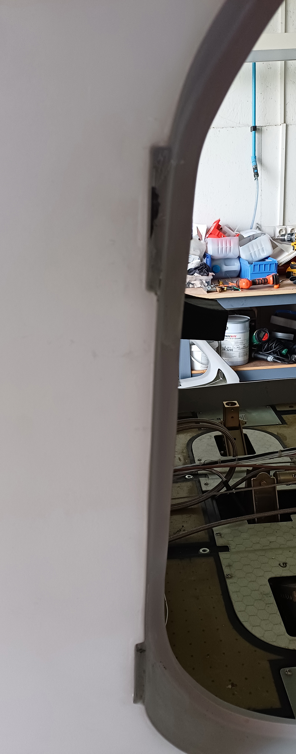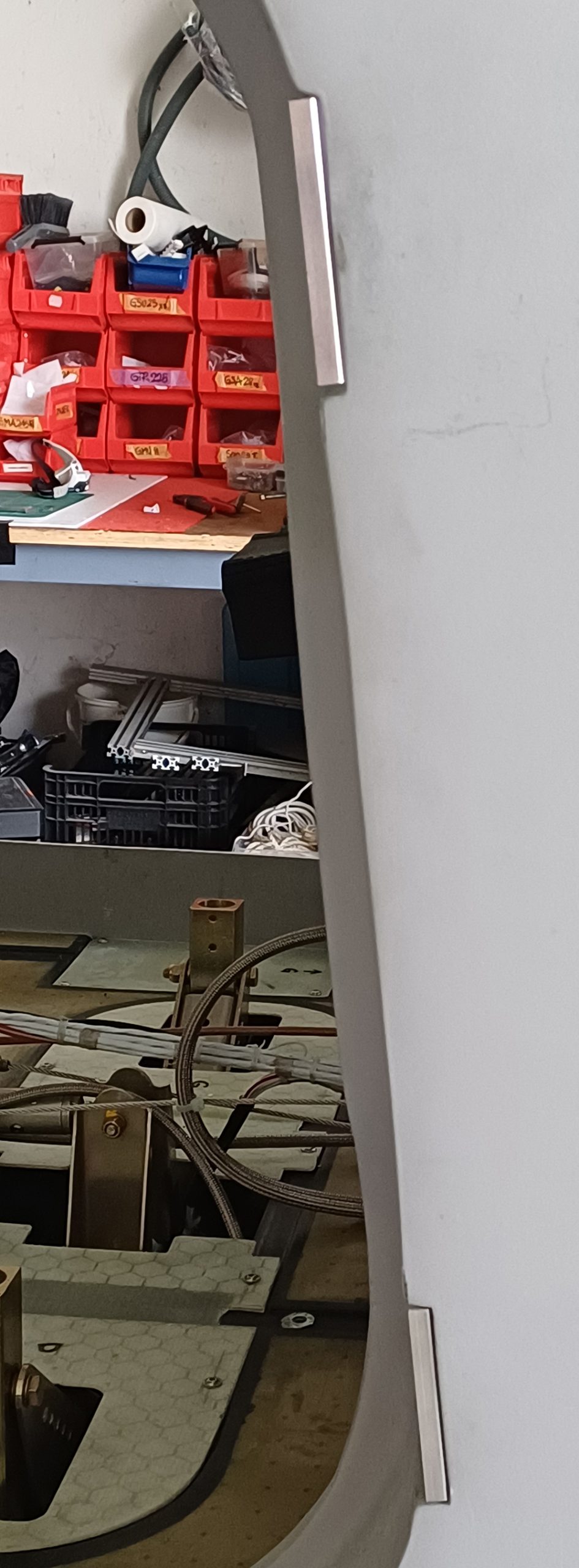 Après pas mal d’attente, j’ai enfin de quoi assembler les portes. Mettre en place les charnières sur la cellule et les portes et présenter le tout. Premièrement, il semble que la porte de droite et celle de gauche ne présentent pas les mêmes défauts. Il faut batailler avec les cales (que je n’avais pas ) et au bout d’un moment arriver à un compromis.