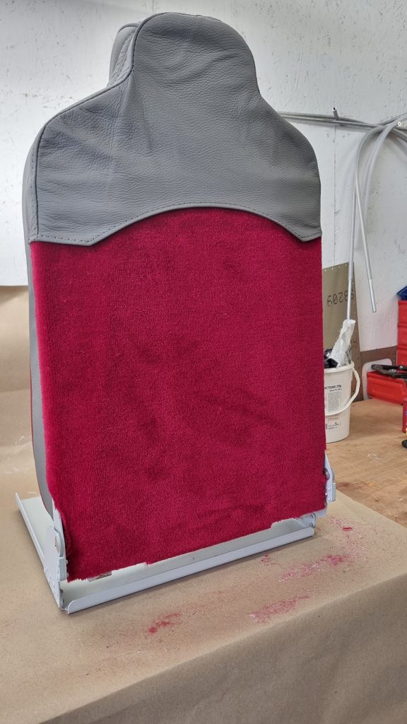 À force de réclamer, j’ai enfin obtenu toutes les pièces manquantes pour finir d’assembler les sièges avant et arrière. Cela n’a l’air de rien, mais rien que sur les sièges avant les articulations du dossier comptent plus de 25 pièces. Ils sont finis, emballés, stockés le temps de les mettre en place au dernier moment. Joëlle les a même testés.